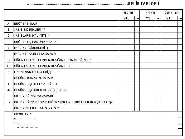 EK-4: Gelir Tablosu Örneği