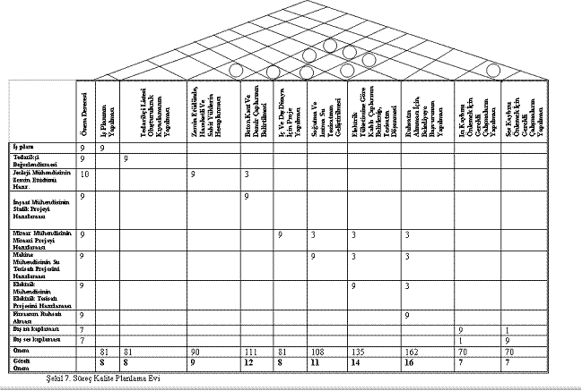 Anahtar Kelimeler: Kalite fonksiyon göçerimi, kalite evi, ürün gelişimi, süreç tasarımı, inşaat tasarımı Key Words: Quality Function Deployment, quality house, product development, process design, building design.
