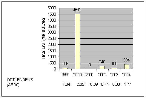 2000 yılında halka arz 44 adet gerçekleştirilirken en yüksek hasılat elde edilirken, İMKB-100 endeksinin ortalaması 2,35 dolar olmuştur. Sonraki yıllardaki halka arzların miktarı ve adetlerine bir daha ulaşılamamıştır.