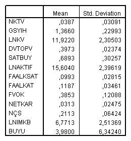 Çalışmada, daha önceki çalışmalarda firmanın borçlanma oranı ile ilişkili olduğu düşünülen oranlar ele alınmıştır. Ele alınan oranların hangi çalışmalarda kullanıldığı tablo 1’de gösterilmiştir. Bu oranlardan LnİMKB sermaye piyasasının gelişmişliğini, GSYİH borçlanma olanaklarının genişliğini, EB genel konjonktürü, diğer değişkenler ise firmaya ait verileri göstermektedir. Çalışmada kullanılan verilere ilişkin açıklayıcı istatistikler Tablo 2’de gösterilmektedir.