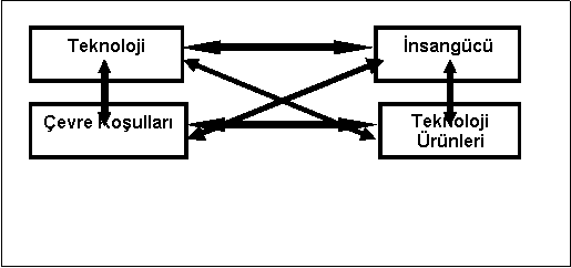 Elektronik bankacılığın birbirleriyle karşılıklı ilişki içinde bulunduğu ve etkilediği teknoloji, insangücü, çevre koşulları ve teknoloji ürünleri olmak üzere dört temel unsuru bulunmaktadır (Akpınar, 1993: 8). Şekil 1’de görüldüğü gibi bilgi teknolojileri, bu unsurların en önemlisidir ve diğer unsurlar için temel teşkil etmektedir.