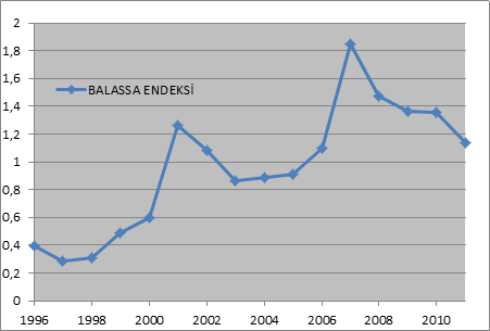 Balassa 'ya göre ülkeler arasındaki karşılaştırmalı üstünlükleri belirleyen birçok faktör bulunmaktadır, bu faktörlerin bazıları daha etkin iken bazıları da karşılaştırmalı üstünlüklerin belirlenmesinde nispeten daha zayıf kalmaktadır. Bu etkinlik ve zayıflığa bağlı olarak da bu faktörlerin ölçülebilmesi zorlaşmaktadır. Bu açıdan Balassa, gözlemlenebilir ya da gözlemlenmiş ticari ilişkileri temel alıp ölçülen karşılaştırmalı üstünlüğü “Açıklanmış Karşılaştırmalı Üstünlükler” olarak adlandırmıştır (Altay, 2008:224-225). Balassa endeksi ile bir mal veya endüstri için hesaplanan değer  1’den büyük ise incelenen mal ya da endüstride açıklanmış karşılaştırmalı üstünlük, eğer 1’den küçük ise o mal veya endüstri karşılaştırmalı dezavantaj söz konusu olmaktadır.